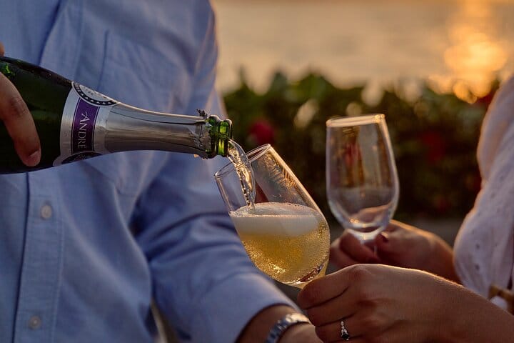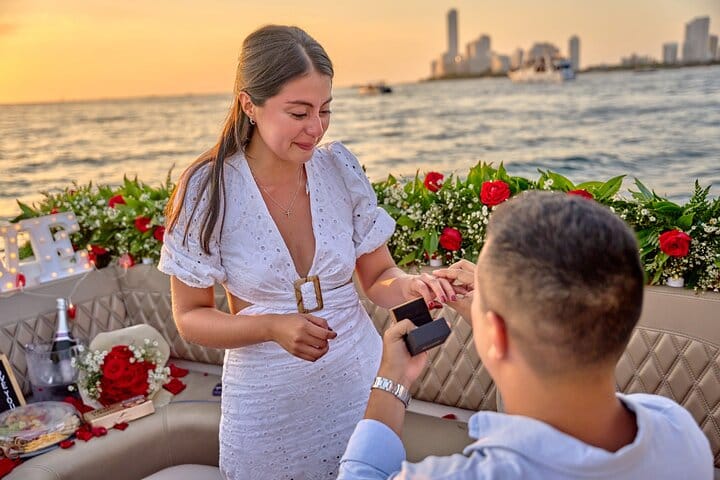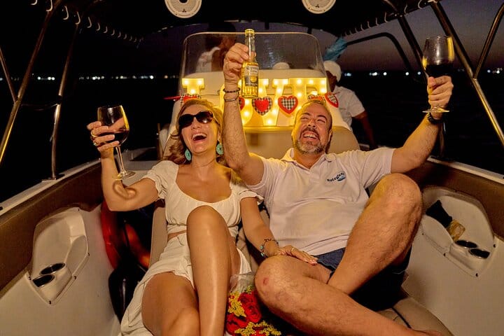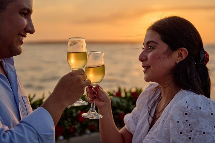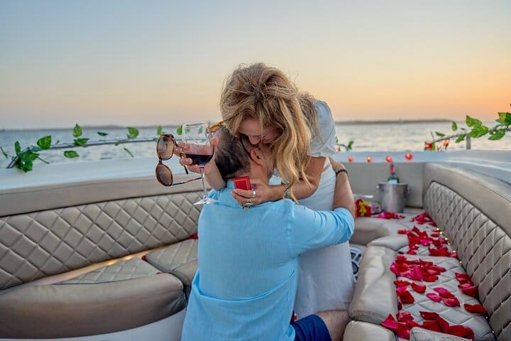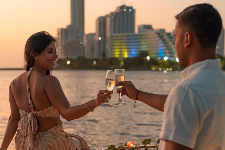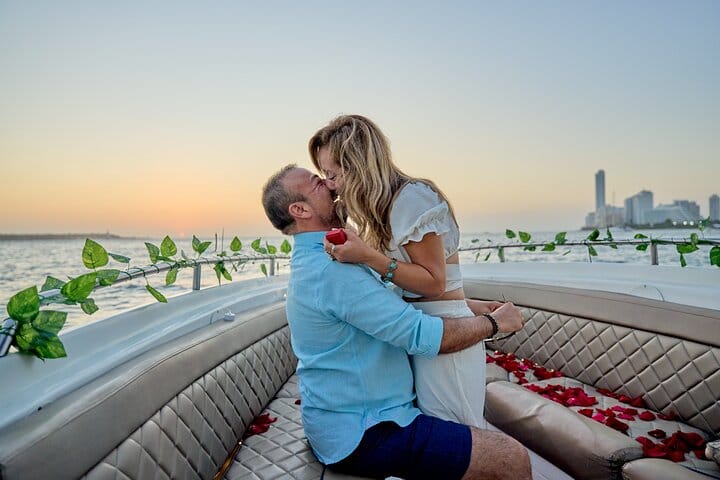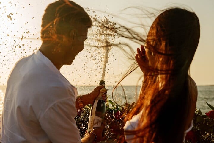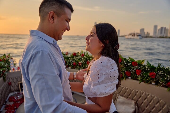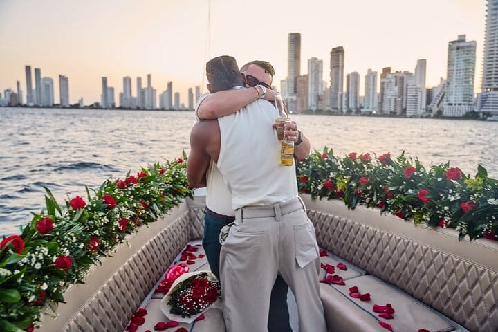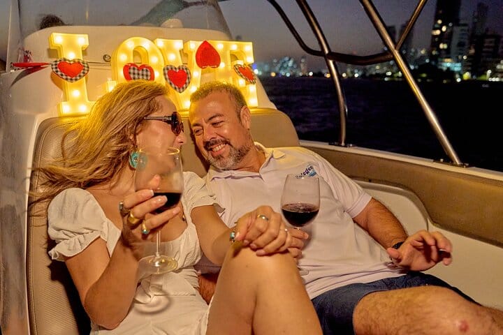 Enjoy a romantic tour aboard a private boat, sailing through the beautiful bay in an exclusive setting just for you and your loved one. During this intimate journey, you'll be greeted with fresh roses, a bottle of champagne, and delicious chocolates, setting the perfect scene for a memorable evening. As you sail, you can relax and admire the breathtaking views of the sunset, surrounded by the tranquility of the sea and the magic of the moment. A tour designed to make your experience truly special and unforgettable.