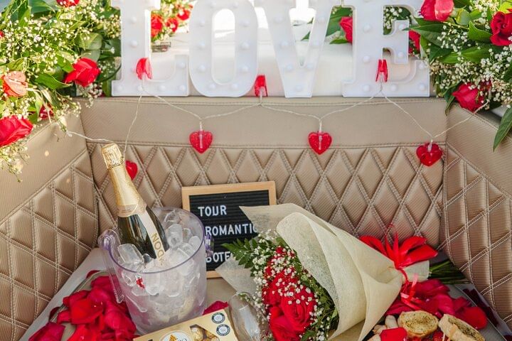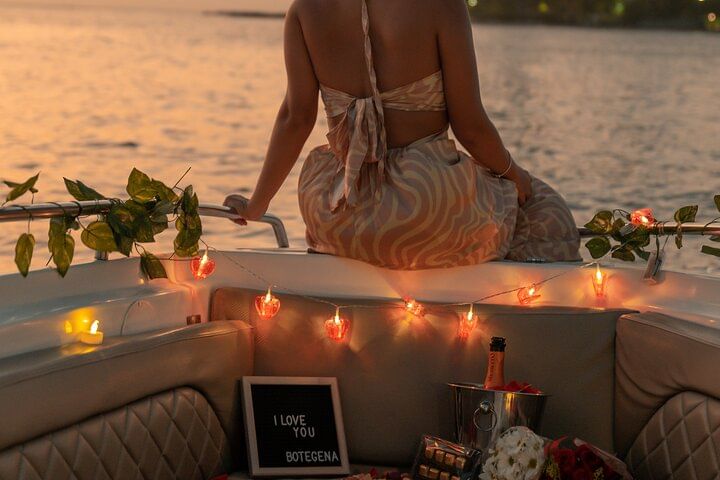 Enjoy a romantic evening aboard a private mini yacht, sailing through the stunning bay of Cartagena in an exclusive setting designed just for you and your loved one. This intimate 2-hour experience begins with a warm welcome featuring fresh flowers, two bottles of champagne, and decadent premium chocolates, all perfectly arranged to set a magical tone for the night.