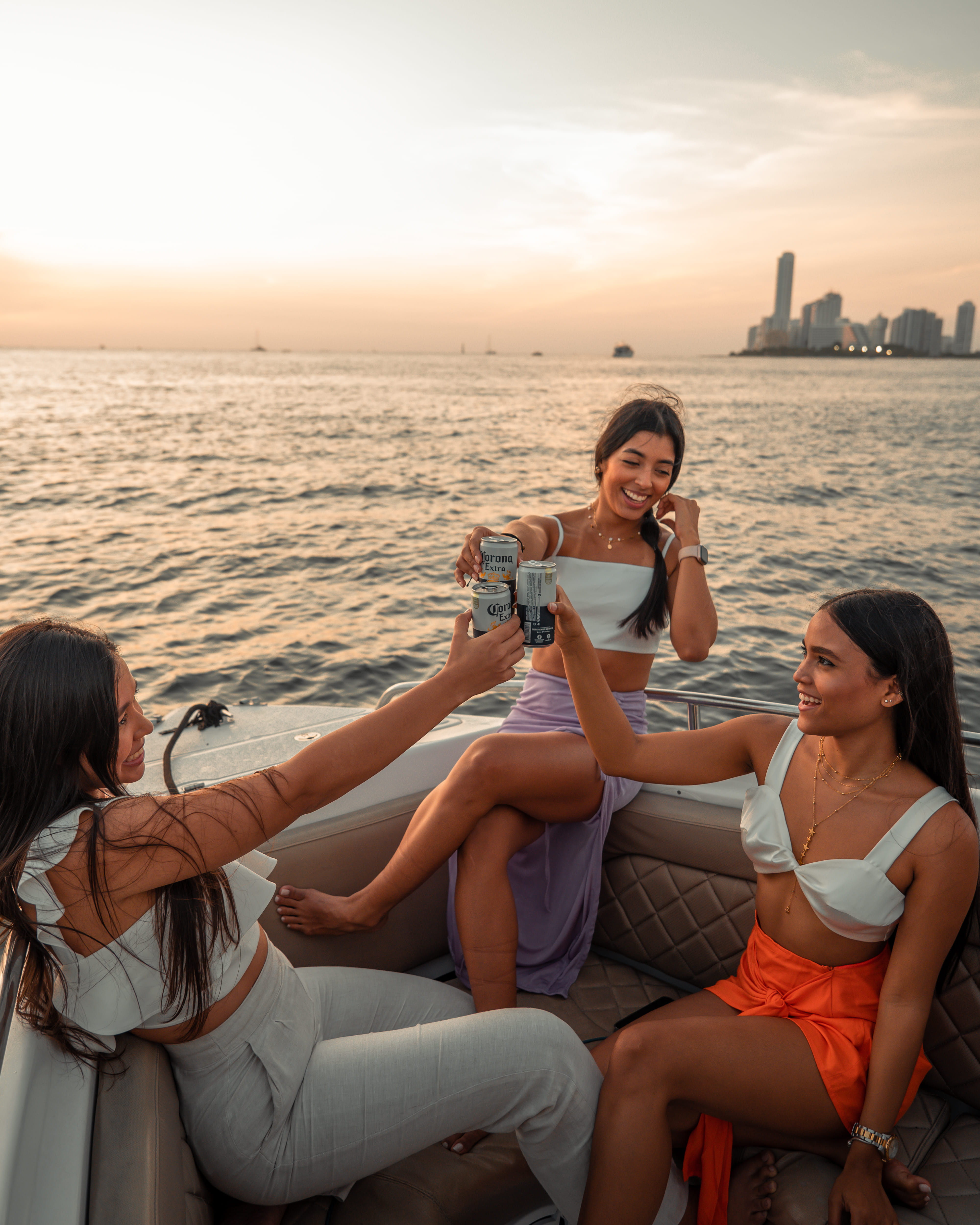 Enjoy a 2-hour sunset cruise along Cartagena’s stunning bay, where you can soak in the beauty of the golden hour, share special moments with your loved ones, party, dance to great music, and sip refreshing drinks on board.